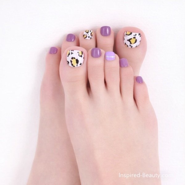 The flowers on the toenail designs on the two toes make this nail art even more interesting. All the other nails are painted in grey and the color is natural and pretty for the season.