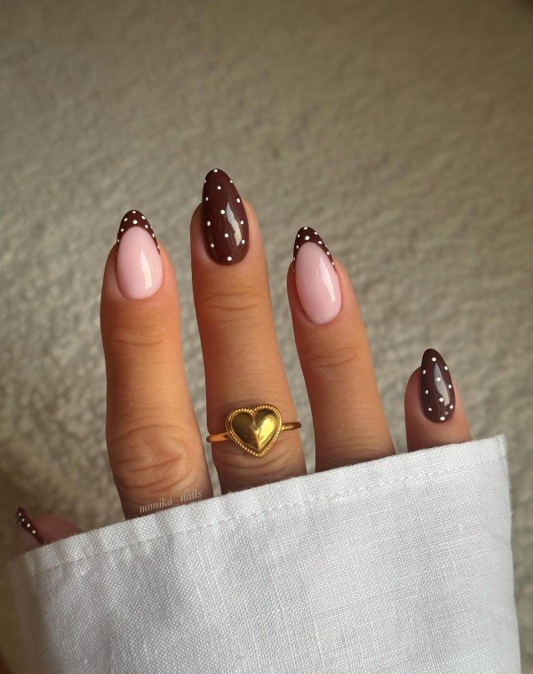 How about some flowers or a floral nail design? Brown nails can look just as stunning with a flower pattern. You can really enjoy this color combination all year round.