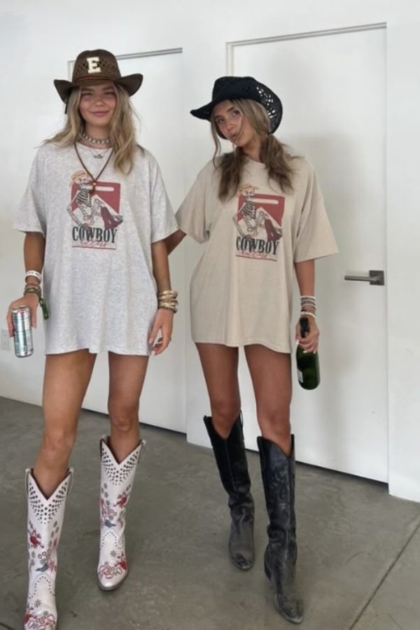 If you are thinking about a classic style, a graphic tee, and denim shorts. A cropped top keeps the look youthful and modern, fun, while still with the classic western boots. This style shows confidence, and it’s perfect for warm-weather concerts in summer.