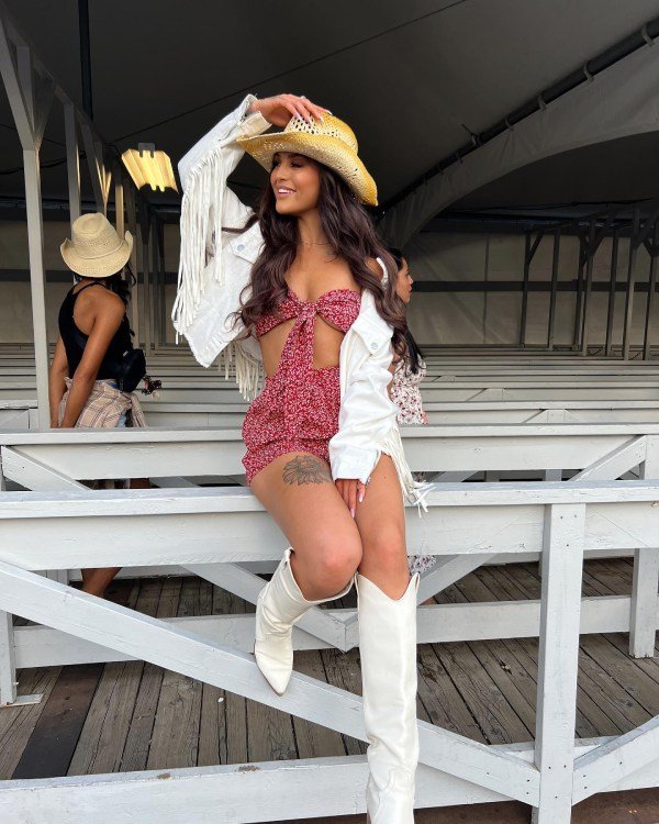 This look with a fringe vest and boots to let you instantly feel like a western. This looks work for both day and nighttime concerts.