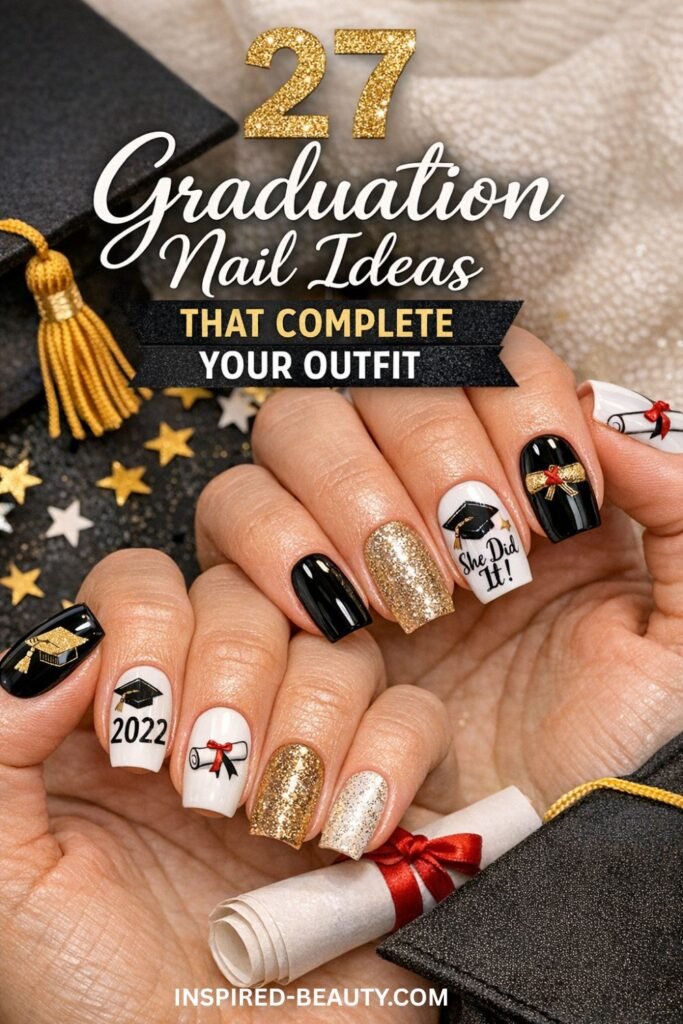 Most girls don’t want to have long nails even on such a day. Getting graduation nails to match your style and personality is always recommended.