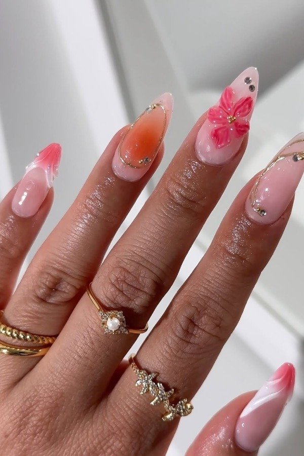 Each nail features a different tropical design for variety. This look is creative and unique. Perfect if you want something fun and personalized.