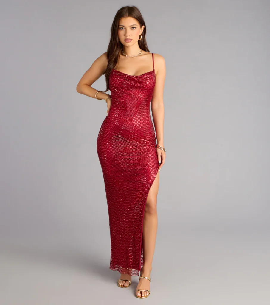 Stylish, sharp, trendy, and birthday red, that’s what I see when I look at this birthday dress. Long midi style with a long slit that shapes to you, hugs you, and gives a stunning look that flows just right.